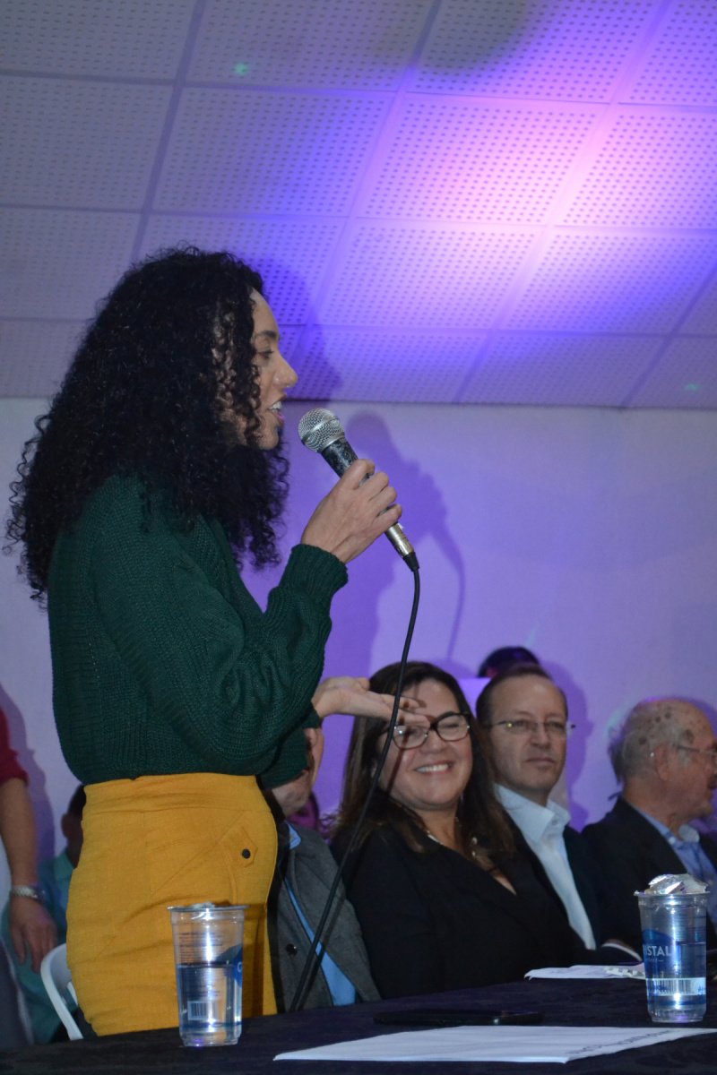 A mesma recebeu apoio dos presentes com sua fala, fez os presentes se levantarem e aplaudir a mesma, que não tem medo de reivindicar em prol desse importante seguimento que apóia e defende os interesses da sociedade.